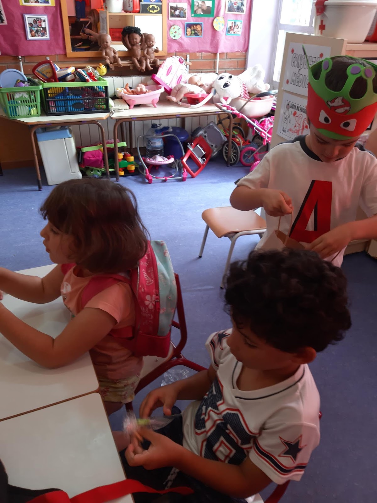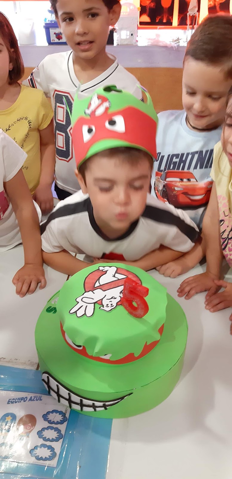 CON SU CORONA Y TARTA DE TORTUGA NINJA-GHOSTBUSTERS Y JUNTO A SUS COMPAÑEROS CELEBRAMOS UN BONITO CUMPLEAÑOS.